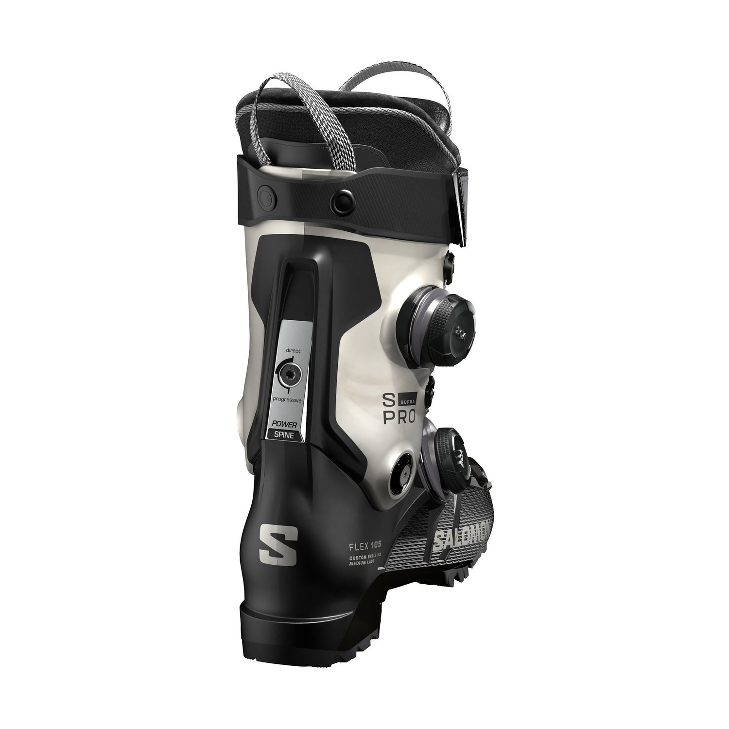 Salomon S/PRO Supra Dual BOA® 105 är en all-mountain-pjäxa för avancerade damåkare som vill ha en exakt, fotnära passform utan att kompromissa med komforten. Med två separata BOA®-vred kan passformen finjusteras oberoende i både nedre skal och manschett, vilket ger jämnt tryck, stabilt hälgrepp och effektiv kraftöverföring i varje sväng.