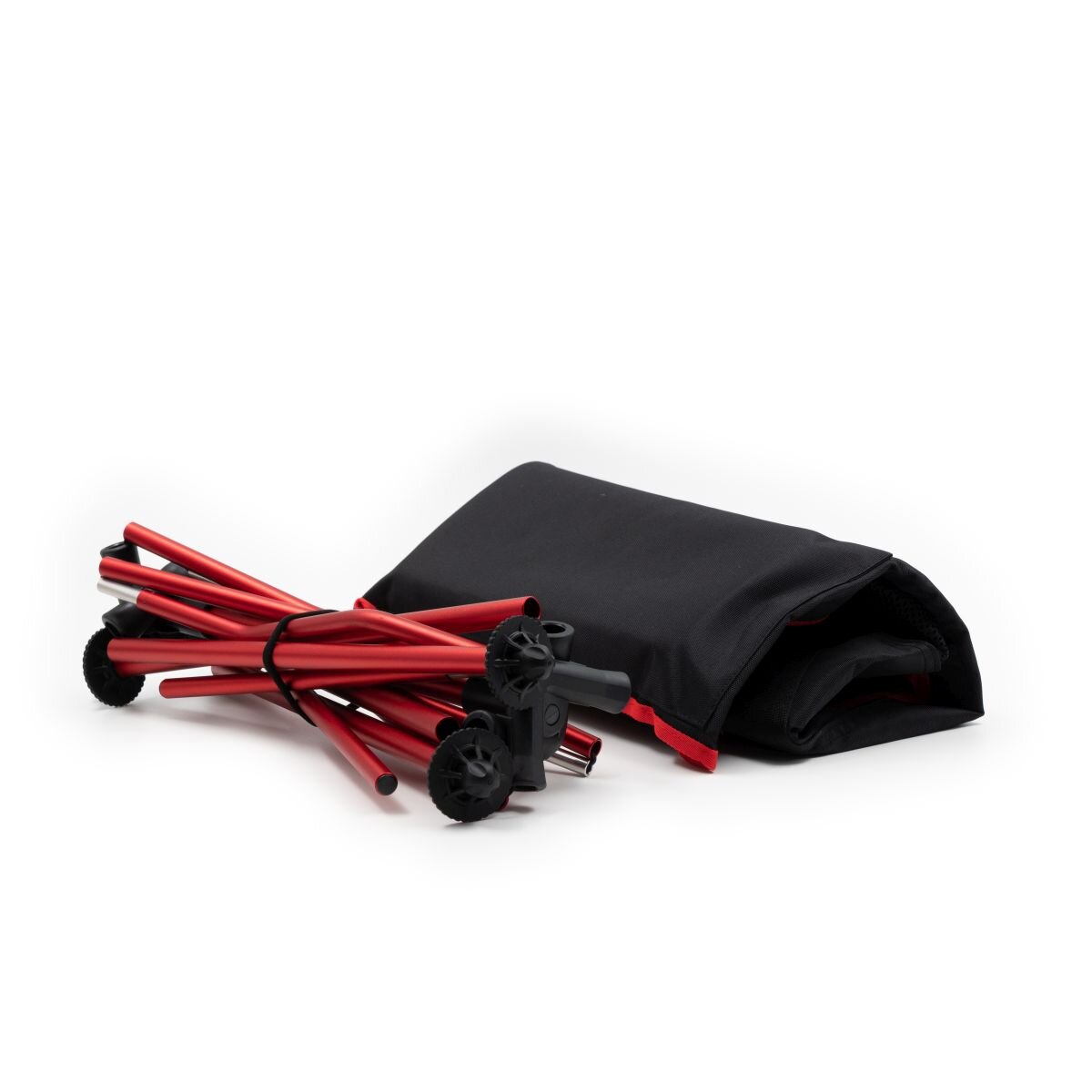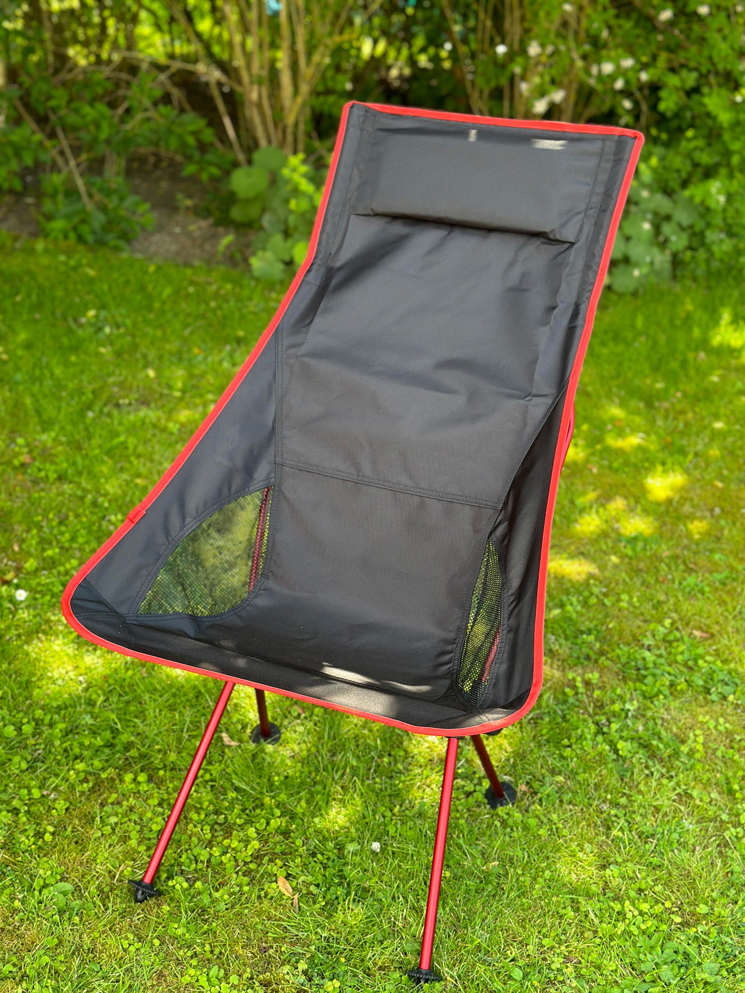 Stolen levereras i en liten väska som gör den lätt att bära med sig. Benen sätts snabbt ihop, utan några verktyg. Fötterna har runda tassar för att stolen inte ska sjunka ner i marken.