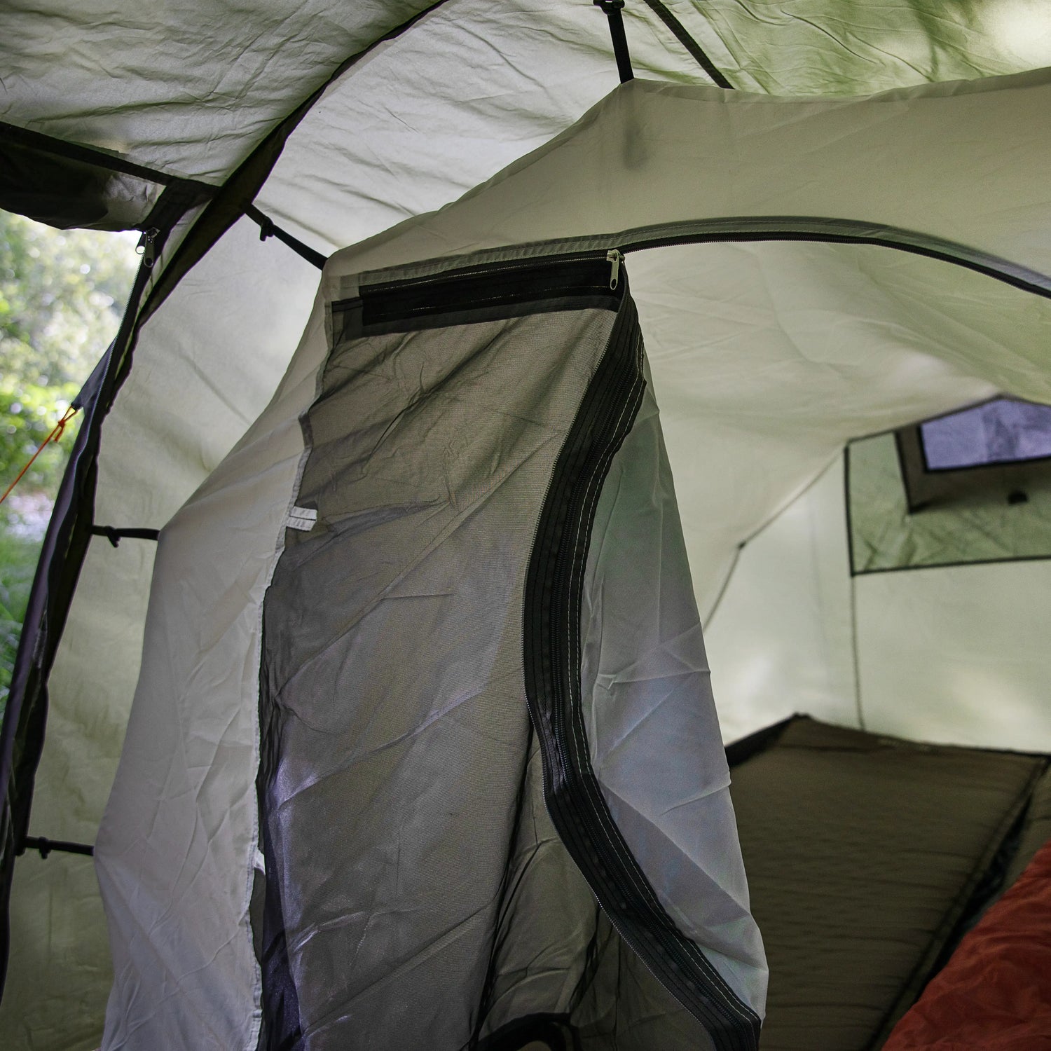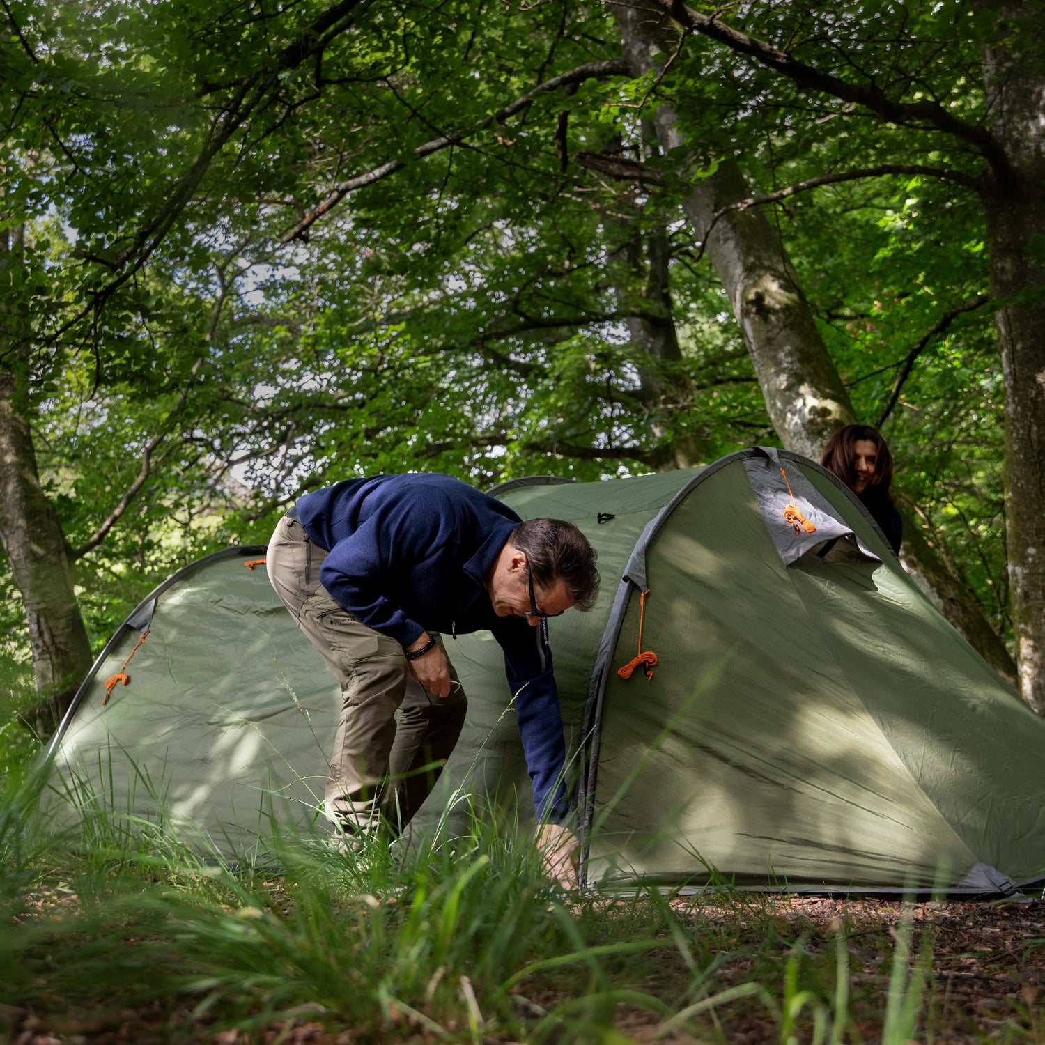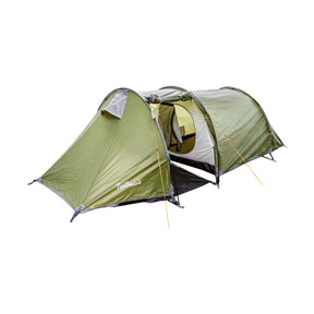 Eftersom alla sömmar är tejpade och ytterduken klarar 3000 mm i vattenpelare så skyddar tältet dig även mot kraftiga hällregn. Tältet har dubbla ingångar och myggnätsdörr till innertältet. Tunnelkonstruktionen gör det lätt att både laga mat och och lagra packning i det rymliga förtältet. Det lösa golvet till förtältet gör att din packning skyddas mot fukt och smuts, men kan också lämnas hemma för att minska vikten.