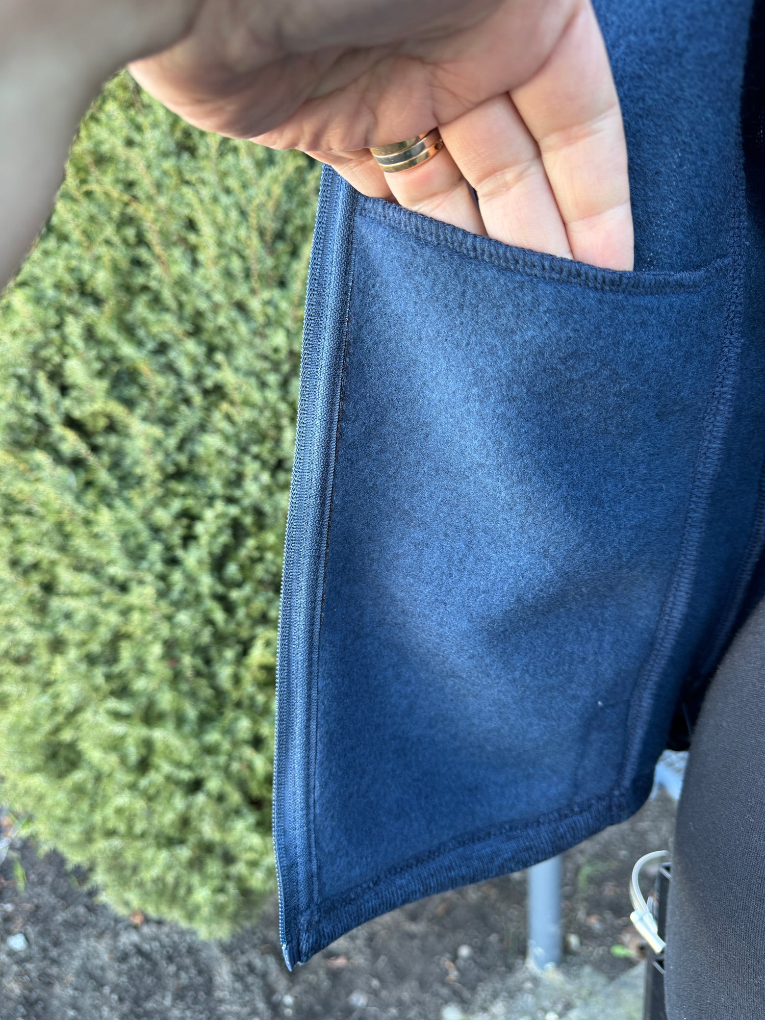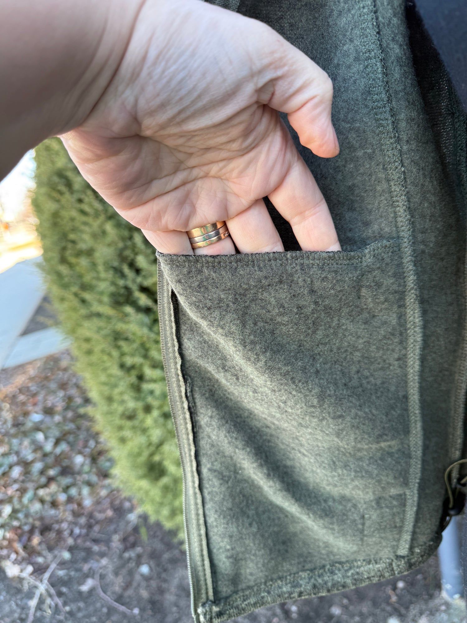 Den fungerar lika bra som ett värmande mellanlager under en skaljacka som att bära för sig själv under svala sommarkvällar när daggen faller. Den höga kragen skyddar effektivt mot kyliga vindar och de rymliga ytterfickorna håller dina händer varma.
