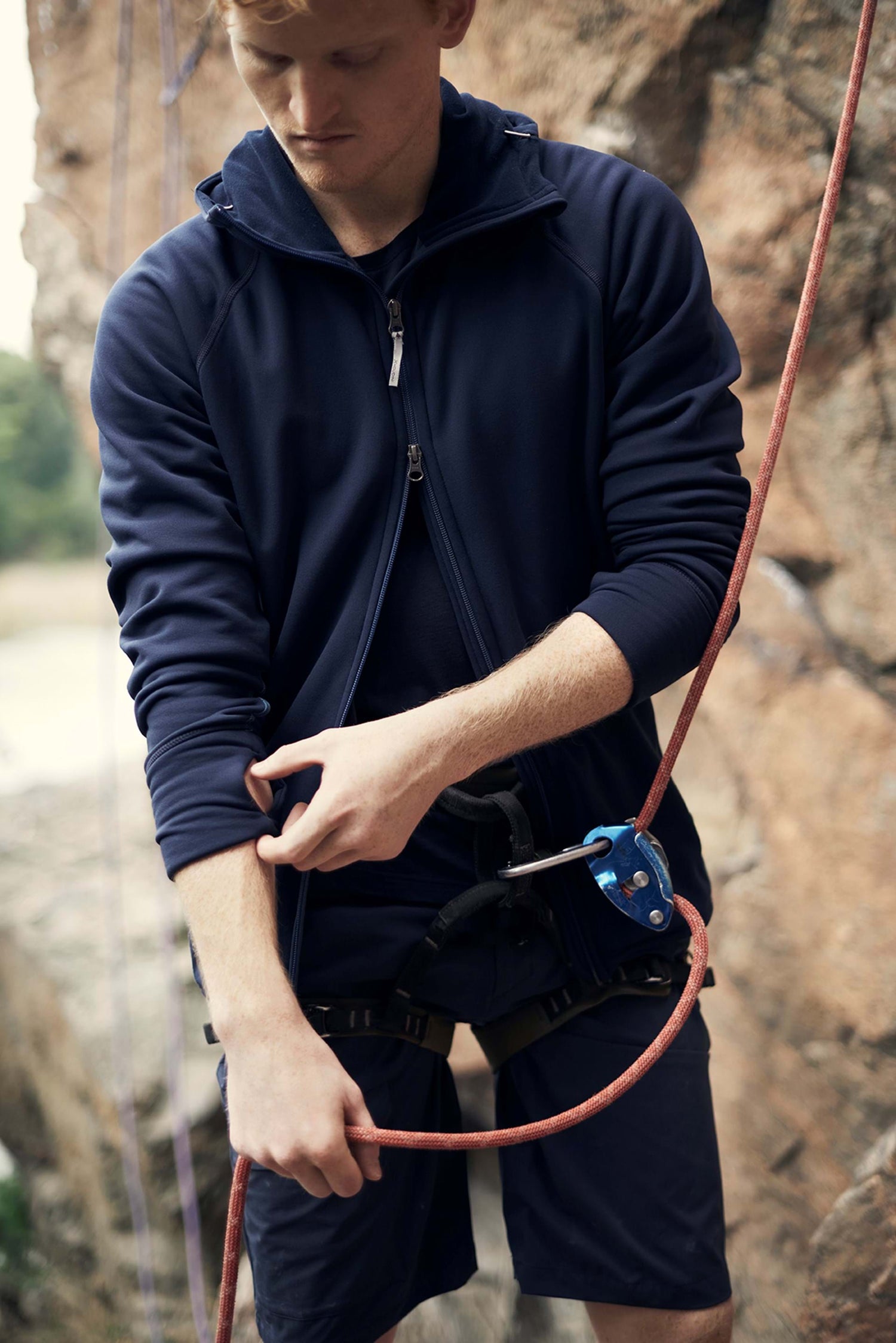 Go Shorts för män är tillverkade i Prime Ripstop™, ett helt återvinningsbart tyg som är lätt, stretchigt och mycket bekvämt att bära. Den slitstarka ripstop-konstruktionen med mekanisk stretch ger en perfekt balans mellan luftgenomsläpplighet och vindskydd. En 100 % PFAS-fri vattenavvisande impregnering håller shortsen torra under kajakpaddling eller korta regnskurar på vandringen.