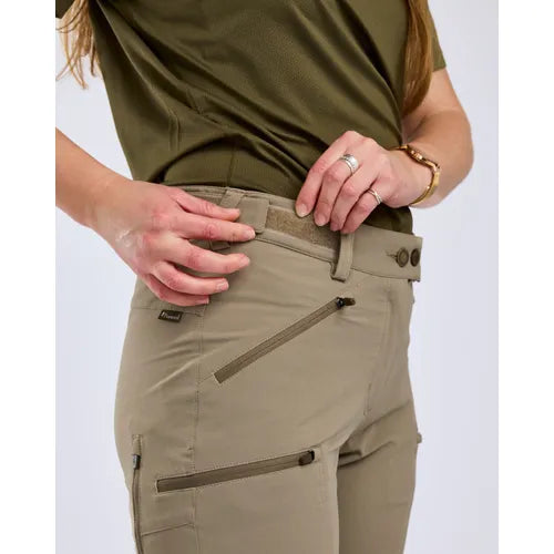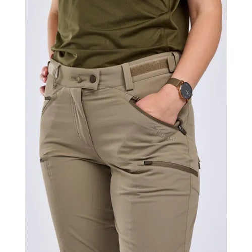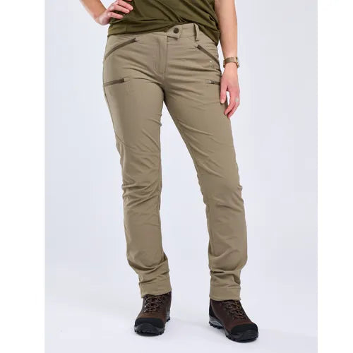 Stretchiga dambyxor med många funktioner, passar dig som ska gå på vandring eller som vill ha ett par mjuka och snygga byxor för utomhusaktiviteter.