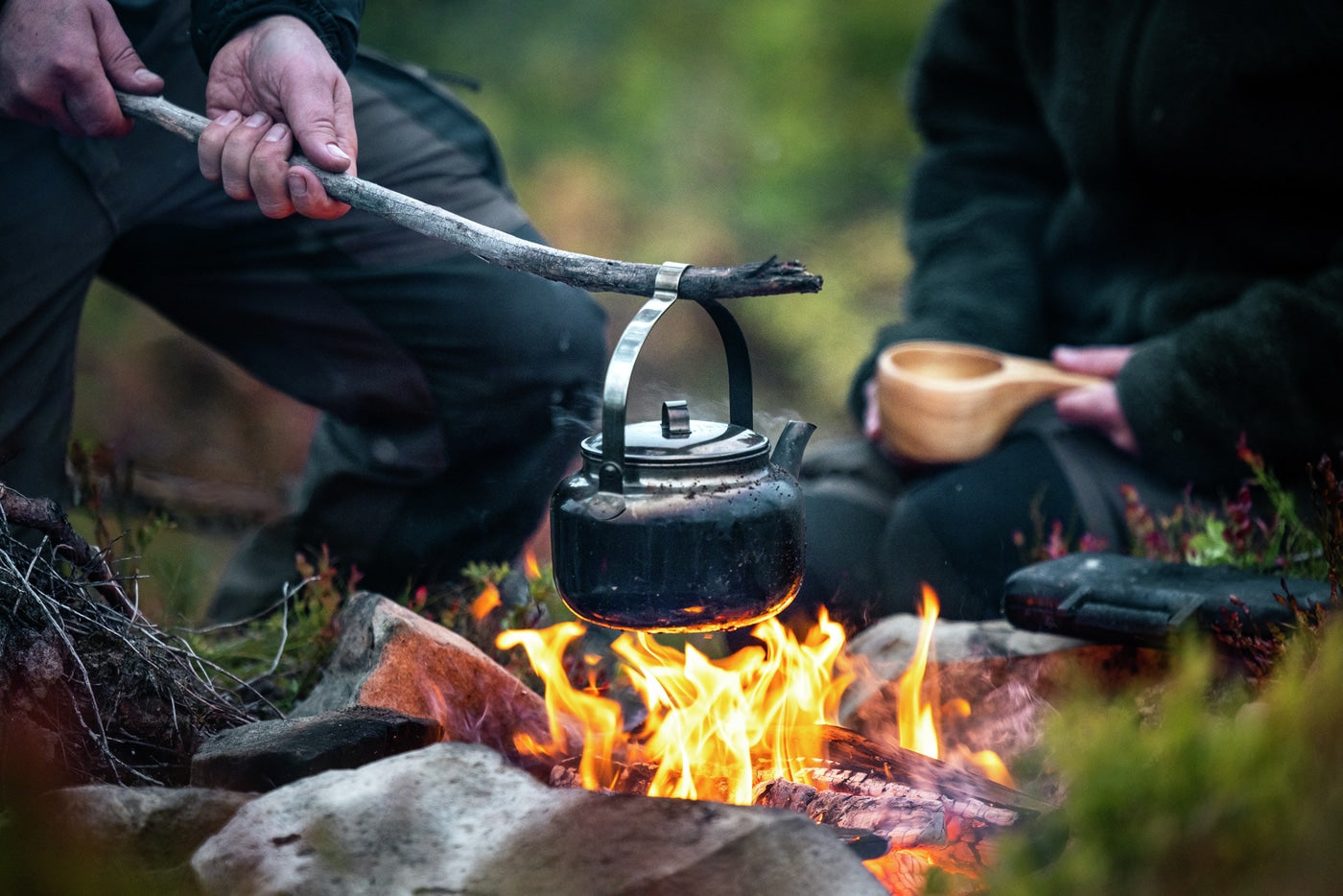 En rymlig kaffepanna som både kan hängas över elden och stå direkt i glöden. Perfekt för hajken, lägret, i parken och skogen. Får med tiden ett rustikt, sotat utseende.