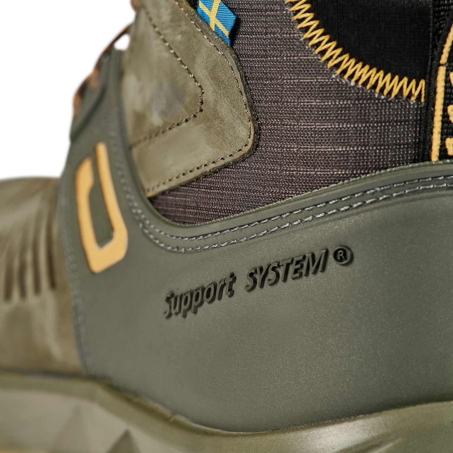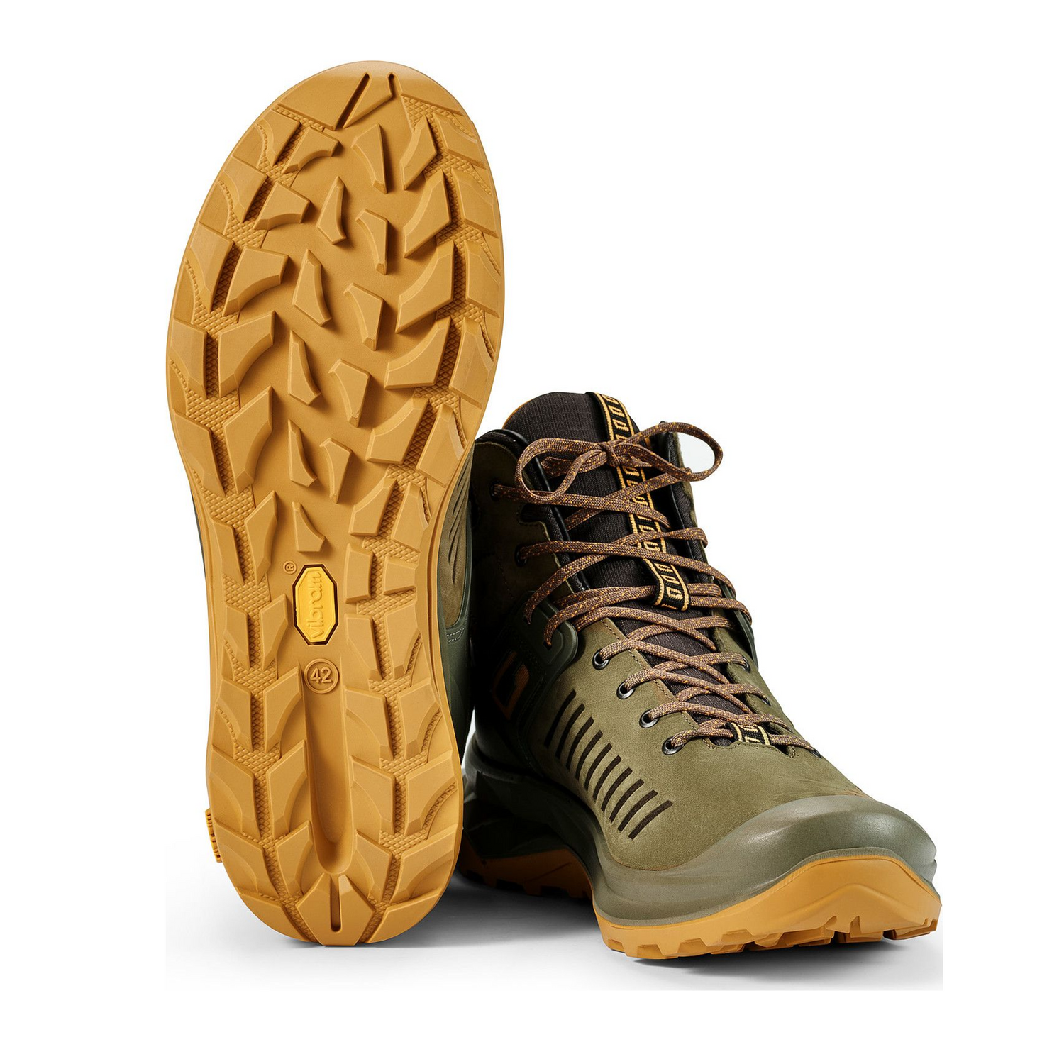 Dessa lätta kängor är tillverkade i nubuck och utrustade med ett vattenavvisande Grantex®-membran, vilket ger skydd mot fukt. Den löstagbara innersulan bidrar till en anpassningsbar komfort. Ett Support System ger extra hälgrepp för bättre stabilitet i terrängen. Yttersulan är en Vibramsula som ger ett bra grepp på olika underlag.