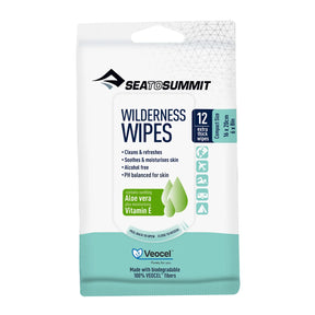 Sea to Summit Wilderness Wipes är framtagna för att vara snälla mot huden och miljön och innehåller vårdande Aloe Vera och Vitamin E.