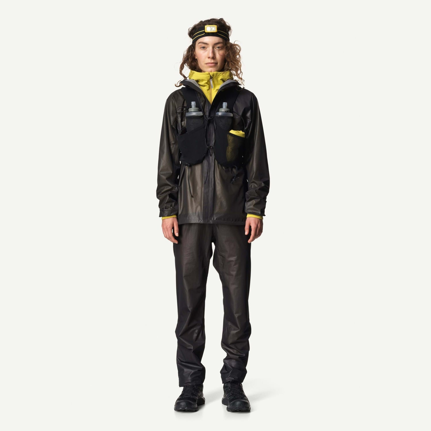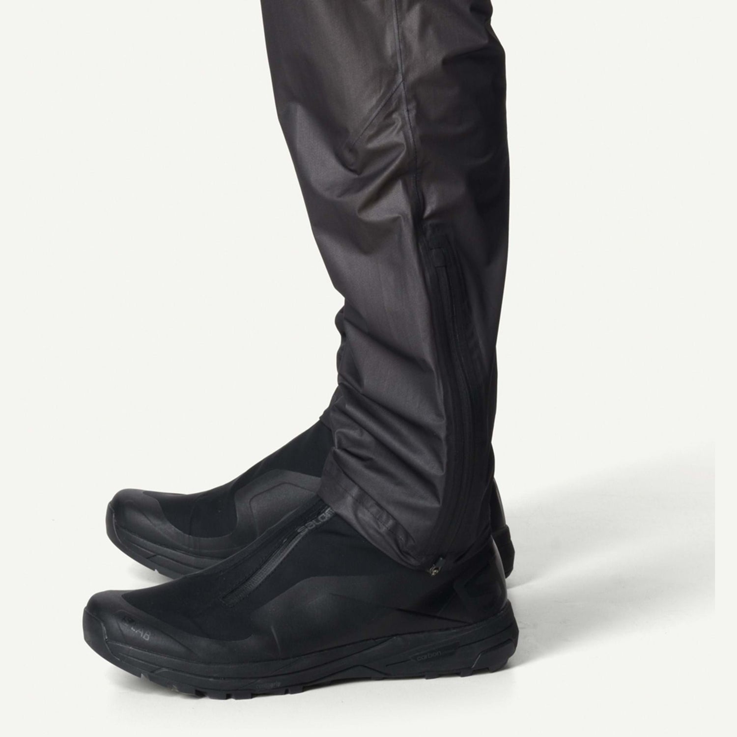 Byxorna är tillverkade i ett avancerat 3-lagersmaterial som kombinerar full vattentäthet med god andningsförmåga. Det tunna, mjuka och tysta tyget gör dem bekväma att bära när vädret snabbt slår om, samtidigt som de knappt märks i packningen när solen skiner. Perfekta som ett backup-plagg för löpning, vandring eller alpina aktiviteter där varje gram räknas.