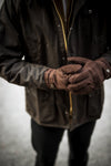Klassisk varm vinterhandske sydd i nubuckläder av get. En stilren herrmodell med kort ribbstickad mudd och läderrem med knäppning på ovanhanden. Fodret i mjuk polyesterfleece ger tillsammans med Primaloft Gold syntetfyllning skön värme under kyliga vinterdagar. En bekväm handske som både är sportig och elegant och som passar lika bra i stadsterräng som lantligare miljöer.