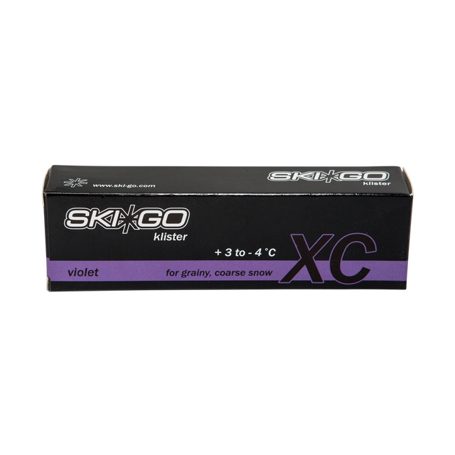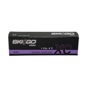 XC Klister Violett är ett tryggt val när snön är kornig eller grov och temperaturen pendlar mellan plus och minus – ett klister som ger säkert grepp utan att kompromissa med glidet.