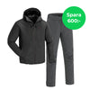 Spara 600 kr på att köpa regnjacka och byxor tillsammans. Pris på jacka och byxa var för sig är 4190 kr.