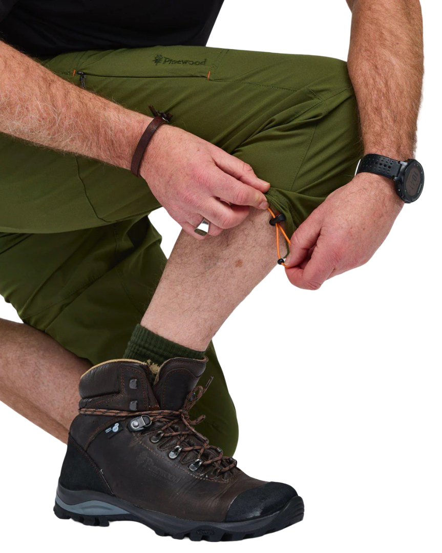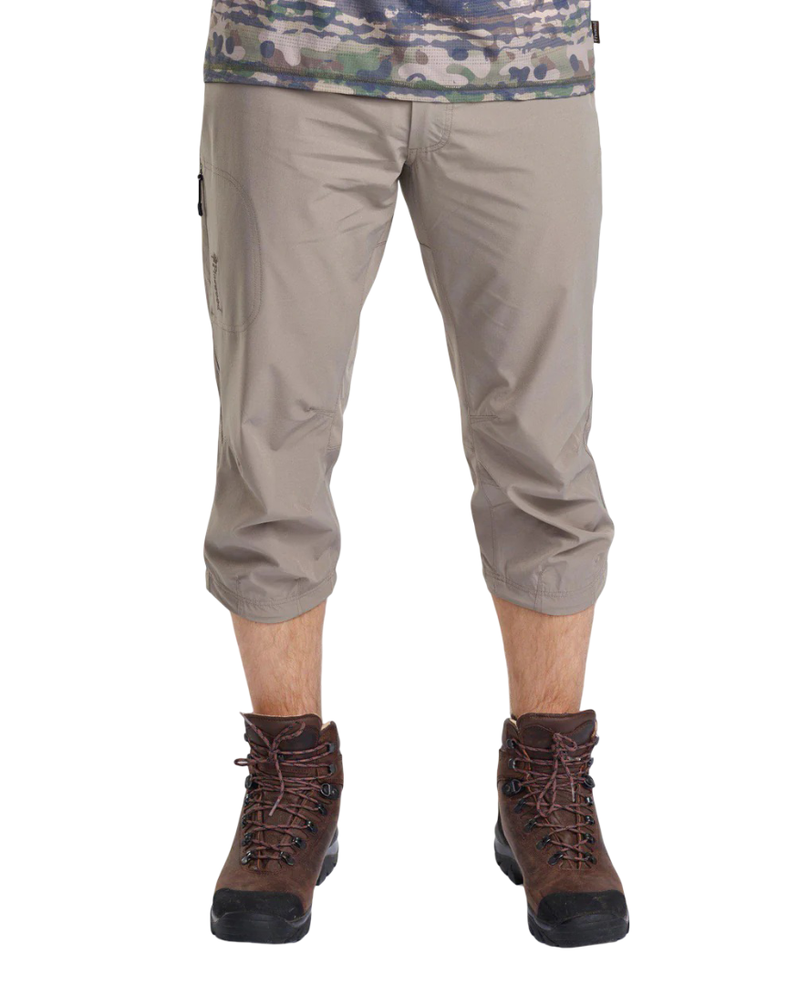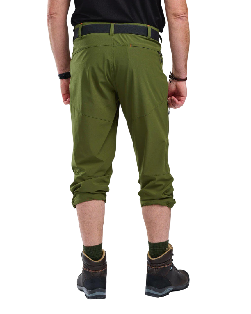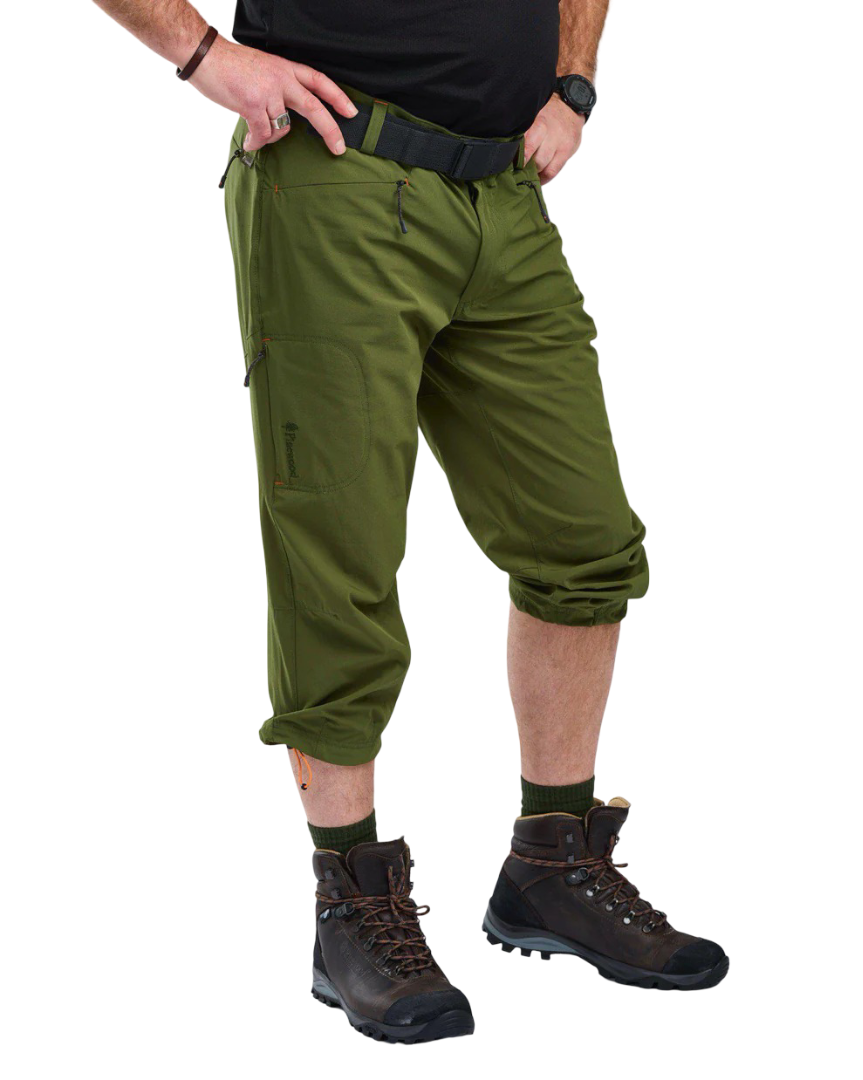 Finnveden Sports Light är en serie som fokuserar på rörlighet. Här är produkterna lätta i vikt och har ett material av högkvalitativ 4-vägsstretch för ökad smidighet. Tyget är behandlat med en impregnering som står emot lättare regn och väta. Dessa trekvartsbyxor för herr passar flera sorters väder. Genom att spänna åt dragskon i bensluten kan du förkorta byxorna för en kortare och svalare modell. De har handfickor och en bakficka med dragkedja, samt en mobilficka på låret med dragkedja. I midjan finns ett skärp med plastspänne som kan justeras för tightare passform.