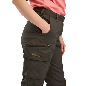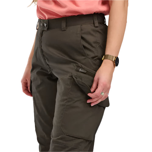 Pinewood® Pro InsectSafe byxor för dam är mångsidiga och passar för många sorters aktiviteter då de har hög andningsförmåga. De består av vårt slitstarka TC-tyg med 2-vägsstretch för extra komfort. Byxorna är dessutom behandlade med en impregnering som håller mygg och fästingar borta från tyget. De har många funktionella fickor, såsom öppna handfickor, benfickor med dragkedja samt benfickor med bälgfunktion och magnetlock. Insidan av ficklocken är försedda med kulhållare för smidig åtkomst av ammunition under jakten. Tunna men rejäla byxor med mycket stretch och funktioner för såväl jakt som friluftsliv.