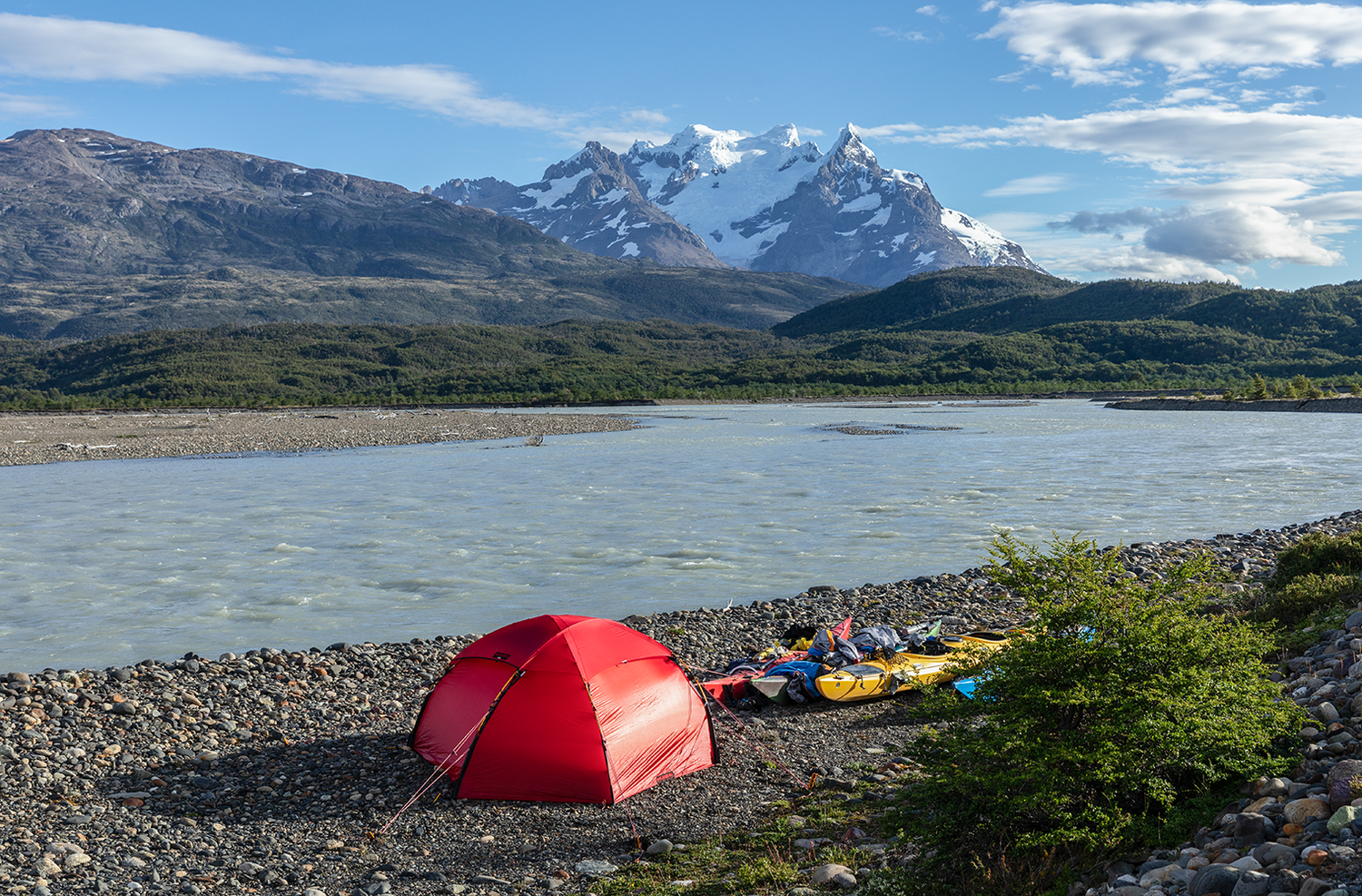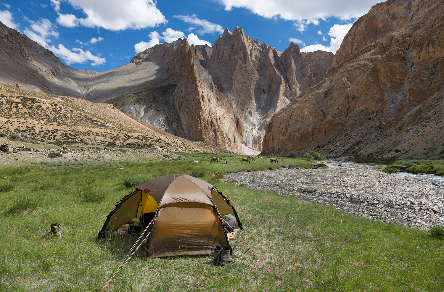 Den fristående designen med tre korsande stänger ger en mycket stabil struktur som klarar både vind och snöbelastning, samtidigt som tältet enkelt kan resas även där markförhållandena gör det svårt att använda tältpinnar, exempelvis på klippor eller i stenig terräng. Konstruktionen lämpar sig lika väl för rörliga turer som för mer stationär användning i basläger.