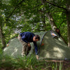 Tältet hålls upp av tre glasfiberbågar som enkelt träs in i de färgmärkta kanalerna. Innertältet krokas fast i yttertältet, låter du det sitta kvar i krokarna så reser du enkelt både inner- och yttertältet på samma gång! Spänningen i tältduken är lätt att justera med spännremmar som sitter vid tältets markfästen. Även golvet justeras med spännremmar.