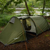 Eftersom alla sömmar är tejpade och ytterduken klarar 3000 mm i vattenpelare så skyddar tältet dig även mot kraftiga hällregn. Tältet har dubbla ingångar och myggnätsdörr till innertältet. Tunnelkonstruktionen gör det lätt att både laga mat och och lagra packning i det rymliga förtältet. Det lösa golvet till förtältet gör att din packning skyddas mot fukt och smuts, men kan också lämnas hemma för att minska vikten.