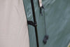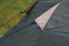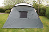 Tältet är försett med flera ventilationsöppningar och fönster med öppningsbara insynsskydd och myggnät.