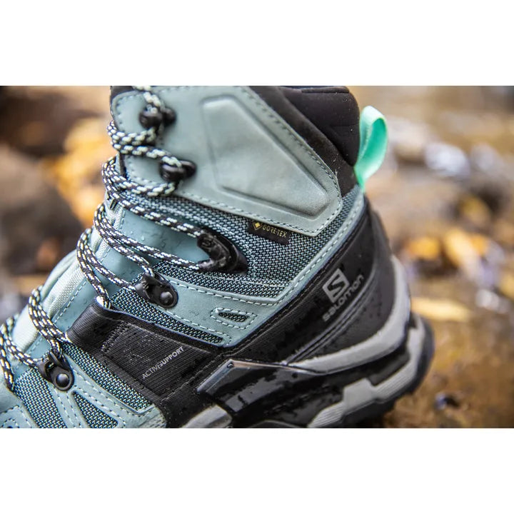 Women's Quest 4 Gore-Tex från Salomon är stabila vandringskängor för damer, utformade för långa expeditioner och tuffa förhållanden. Kängorna har ett vattentätt GORE-TEX membran som skyddar fötterna från väta samtidigt som fukt och överskottsvärme ventileras ut. Det höga skaftet tillsammans med chassit skyddar känsliga leder och ger foten extra stöd, samtidigt som steget behålls lätt och smidigt. Oavsett hur trött du är, eller hur tung ryggsäcken är, kommer Women's Quest 4 Gore-Tex att ge behaglig vandring i all slags terräng.